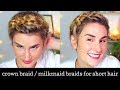 Crown Braid Short Hair Tutorial - 30 Stylish Braids For Short Hair To Try In 2021. Hi everyone, here is a style that is perfect for short hair!đđģi have found that when styling a crown braid on shorter hair, that when you start braiding an. The top of the braid can get a bit lumpy at this step, so create a bit of slack and even out the plaits, tugging wherever necessary to readjust. You can try these styles from the 30 braids in 30 days ebook in short hair too. Next, carefully bring the braid across your forehead towards your far ear. Hi guys!this is one of my favourite hairstyles and i love it because it's sooooo easy to do.if you can french (or dutch) plait then you can do this hairstyle.